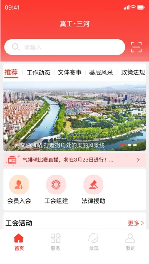 冀工三河APP是三河市总工会推出的移动客户端,旨在服务职工,为职工提供扫码入会建会、法律援助、文体活动、技能培训、技能竞赛、婚恋交友、求职招聘、普惠服务等一系列的工会服务,打造一个线上职工服务平台。