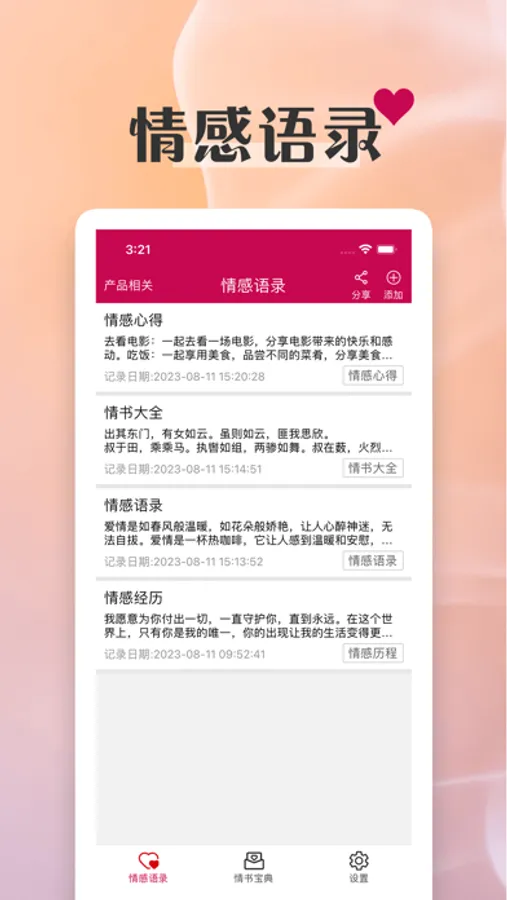 情感宝典就是这样一款用于记录青葱岁月的情感历程点滴的APP
