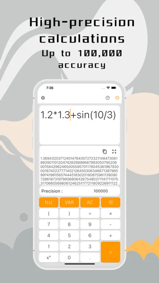 The high-precision calculator supports up to 100,000 precision calculations, rich system functions, variable management, and complex dimension operations.