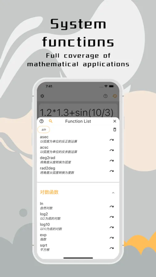 Support rich system functions, covering basic mathematical applications, including trigonometric functions, exponential functions, basic mathematical functions, etc.