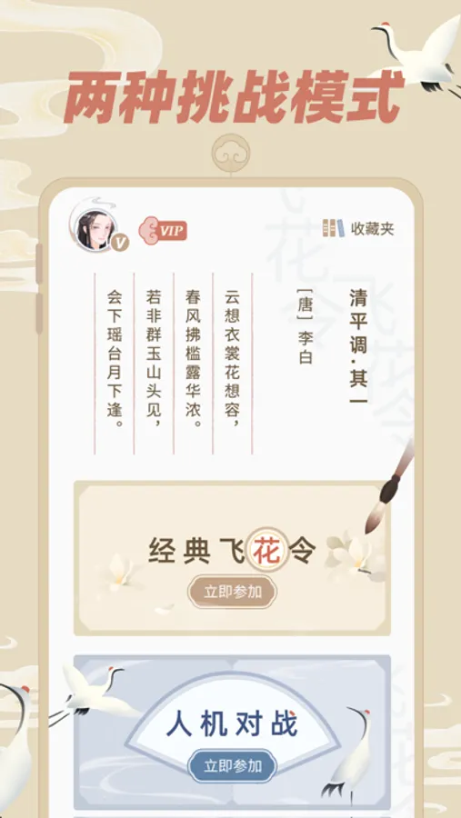 3.本软件设计了两种模式的飞花令玩法: