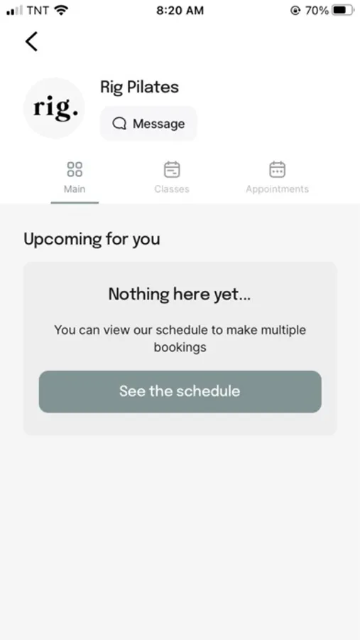 The Rig. Pilates app makes it very easy for you to manage your Rig. Pilates account, book into our classes and events, watch our on-demand content, and keep in touch with us. You can easily message us if you have a question or want to share something with them. You can also follow our public feed to see any announcements we make, promos we run, or content we share.