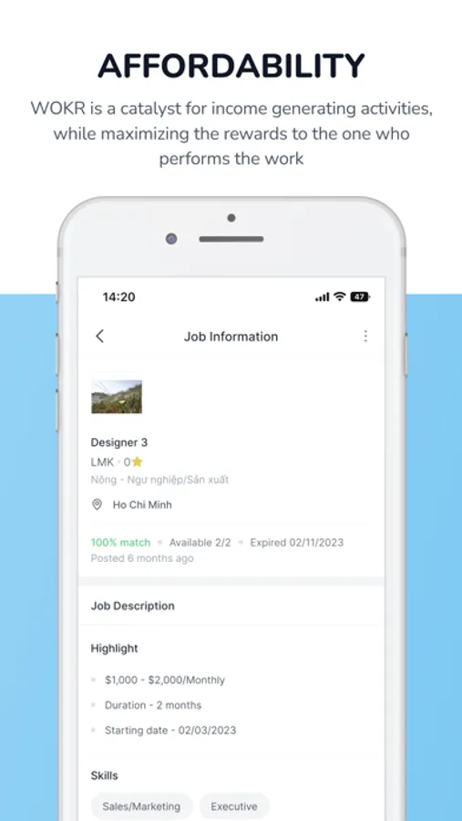 Chào mừng đến với WOKR! Chúng tôi ra đời với sứ mệnh kết nối người lao động, người làm nghề tự do và doanh nghiệp nhỏ trên khắp các tỉnh thành Việt Nam.