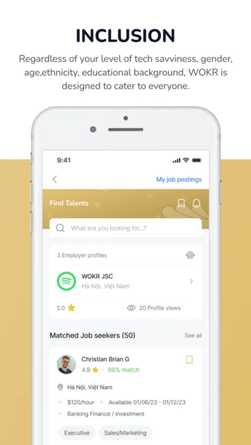 Hãy để WOKR liên tục gợi ý danh sách những ứng viên phù hợp nhất cho doanh nghiệp của bạn thông qua tính năng kết nối hỗ trợ bởi AI của chúng tôi.