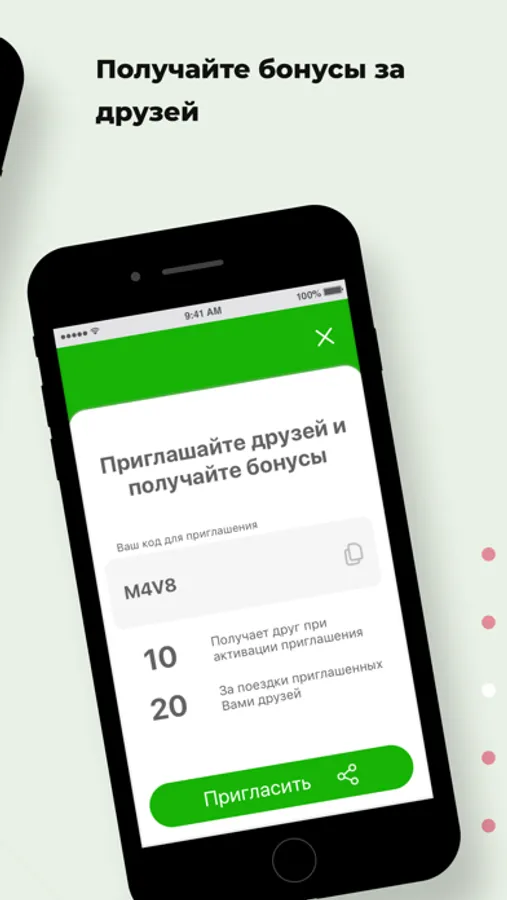 Приглашайте друзей в приложение и зарабатывайте бонусы с помощью реферальной системы. Оплачивайте ими и экономьте на поездках.