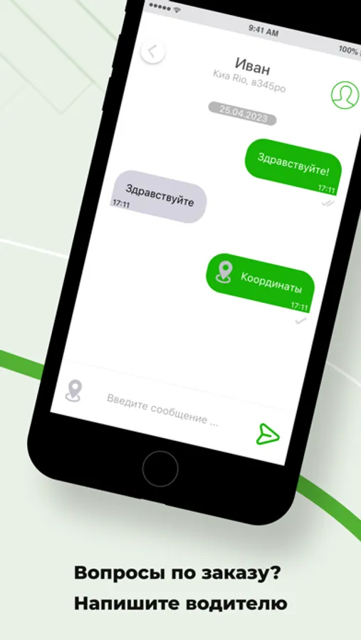 Спросите в чате приложения, где он находится, или отправьте ваши координаты с помощью одной кнопки.