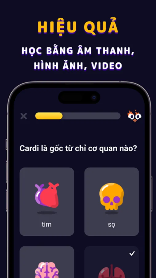 FA Streak là một trò chơi thiết kế theo chặng và mục tiêu của người dùng là chinh phục hết tất cả các chặng mà trò chơi đưa ra. Đặc biệt, bộ từ vựng của mỗi chặng được nhắc đi nhắc lại nhiều lần bằng âm thanh và hình ảnh giúp người chơi dễ dàng tiếp thu kiến thức. Do vậy, bạn có thể nhớ +2,500 gốc từ, tiền tố và hậu tố của 7 hệ thống cơ quan mà chẳng cần tốn lấy 1 xu mua giáo trình, flashcard để ghi nhớ.