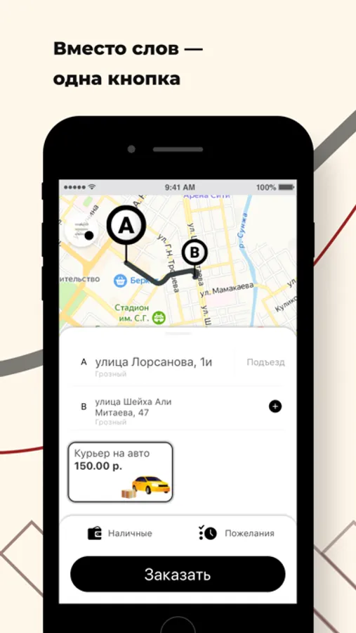 Закажите доставку Deliver в городе Грозный через приложение. Это в 3 раза быстрее, чем по телефону! Между желанием доехать до нужного места и поиском курьера — пара секунд.