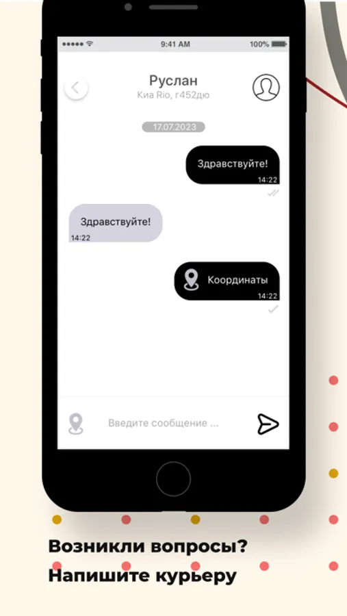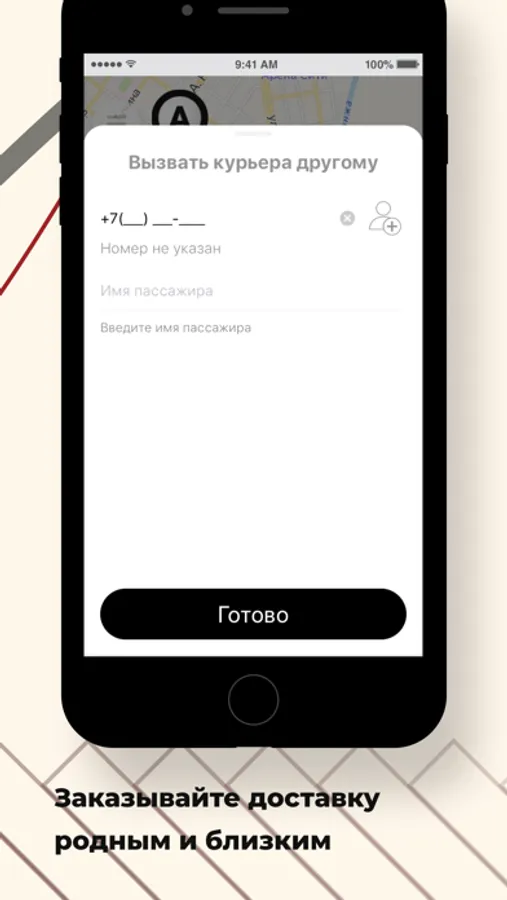 Используйте опцию “Вызвать курьера другому” в разделе “Пожелания” и укажите его номер телефона. Когда курьер подъедет, на указанный номер придет СМС, а вам — сообщение в приложении.