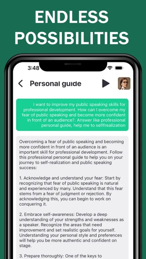 No matter where you are or what time it is, Neuro AI is always there to lend a helping hand. The app operates 24/7, adapting to your schedule and ensuring that you receive the support you need, precisely when you need it. This constant accessibility empowers you to make informed choices and navigate life's challenges more effectively.