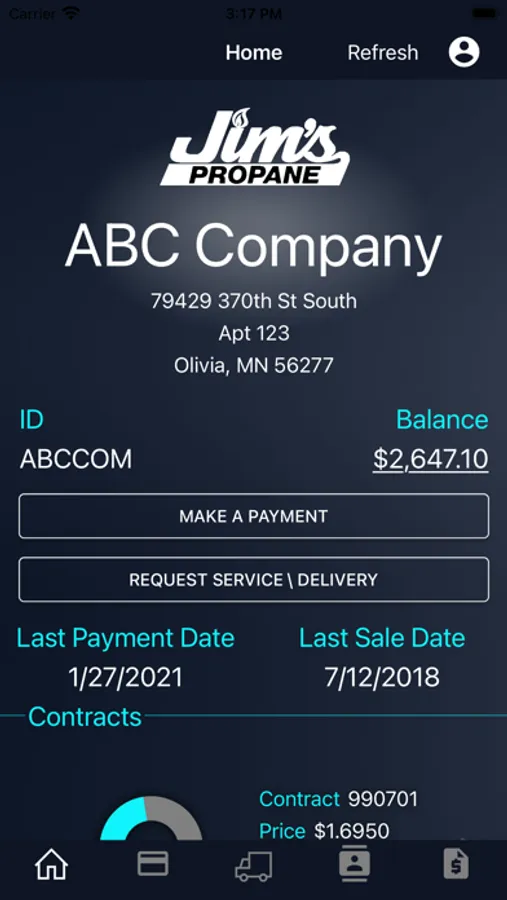 Information at your fingertips! This app gives you direct access to your account balance, location and contract information. It also gives you the ability to store and process payment and request service work and deliveries directly through the app.