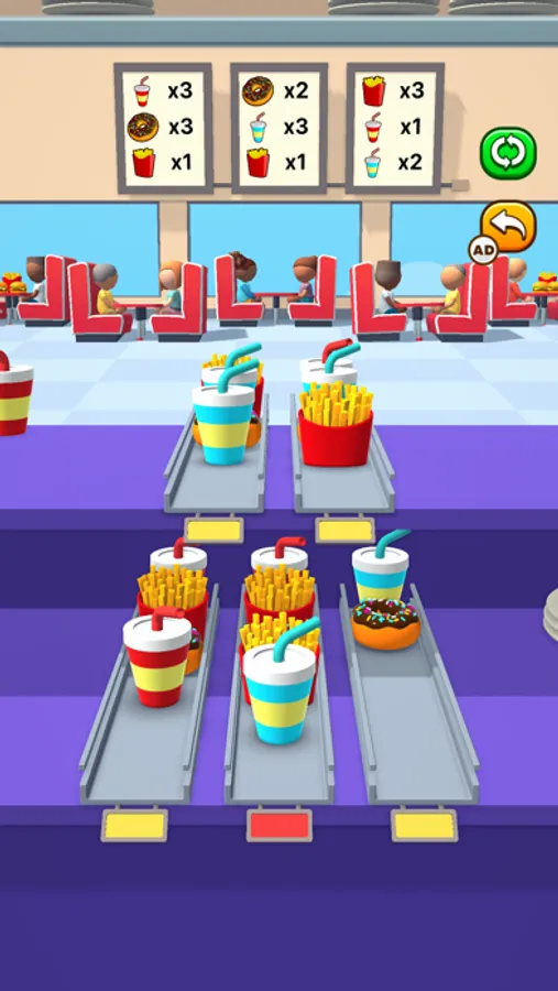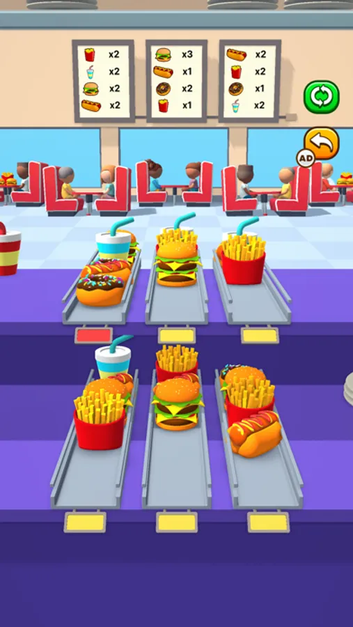 Hotdogs, burgers, fries, drinks, donuts and much more are sizzling down the lanes, and it's up to you to ensure they end up in the right place. Strategize as you juggle a mouth-watering assortment of goodies, each with its own lane.