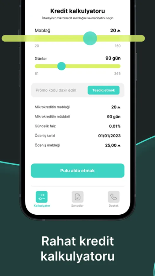 «Azpulmat» mobil tətbiqi ilə krediti anında əldə edə bilərsiniz. Bizimlə siz kredit məbləğini imtinasız və banka müraciət etmədən kartınıza köçürdə bilərsiz.
