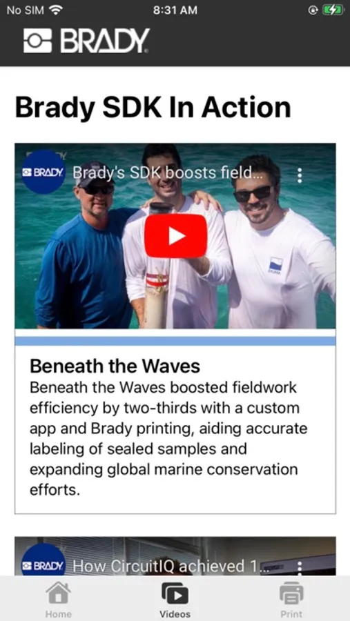 This Brady Print application is a display of what the Brady SDK can achieve. It provides an explanation of how companies may leverage the Brady SDK and discover its many use-cases. It shows several testimonial videos from real Brady customers who have integrated the SDK into their software solutions. Most importantly, it provides a way to see the SDK in action. Simply navigate to the “Print” tab to connect to your Brady printer. You will then have the ability to customize and print several templates for yourself.