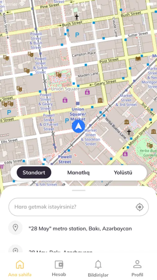 Şəhərdaxili gündəlik gediş ehtiyaclarınız üçün ideal olan "Standart" seçimimizlə əngəlsiz səyahətə çıxın. Dəqiqliyi, etibarlılığı və rahatlığı təmin edərək, səyahətləri rahatlıqla sifariş edin. Yaxpoint-in xüsusi sürücüləri və müasir avtomobilləri yalnız bir düyməndən istifadə etməklə təyinat yerinə tez və təhlükəsiz çatmağınızı təmin edəcək.
