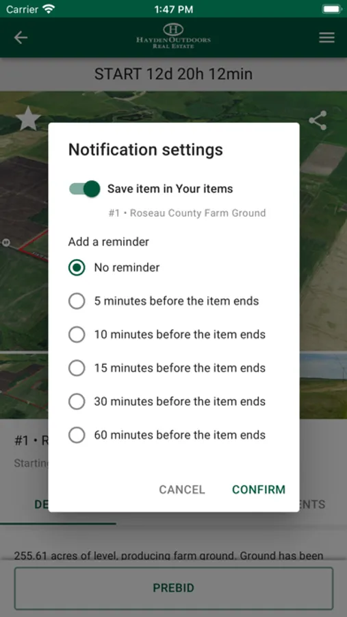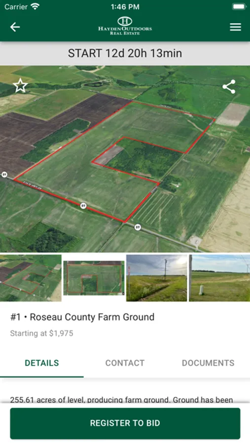 The Hayden Outdoors dynamic app allows you to (1) stay informed about our upcoming auctions; (2) view properties that interest you; (3) get notifications when you’ve been outbid; (4) bid no matter where you are located (or set and forget your maximum bid to let our platform automatically bid the lowest possible winning bid for you). This is the go-to-source for up-to-the-minute information on all of our auctions.