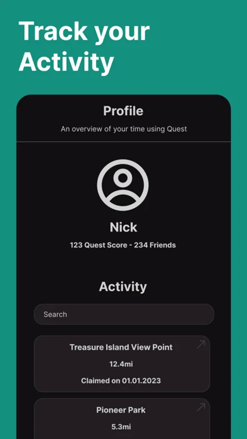 Keep track of your activity: Don’t remember the cool place you visited a few months ago? Whenever you visit a Quest location, a claim button will appear on your screen that will prove to us that you completed the quest and we will keep a record of it. Whenever you want, you can view all of the locations that you have visited and the date it happened.