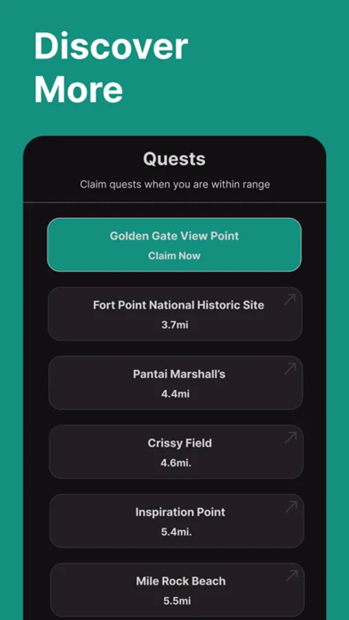 Find new travel locations: Don’t know what places to explore close to you? Quest will show you a list of hand-picked locations with a link to view more information about it on your phone’s Map application.