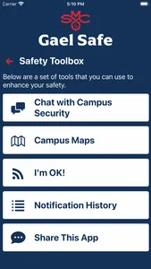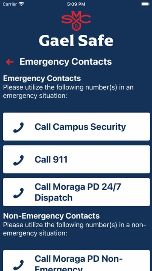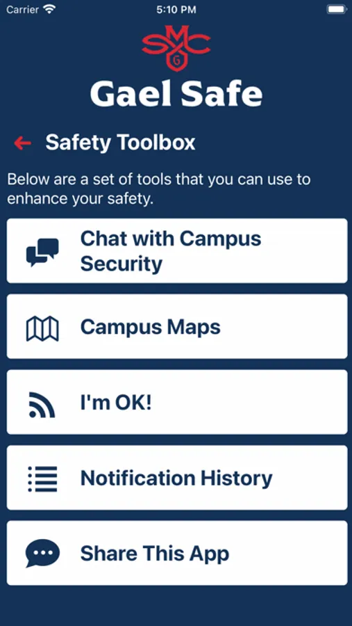 - Chat with Security: Communicate live with safety staff at Saint Mary's College of California via chat.