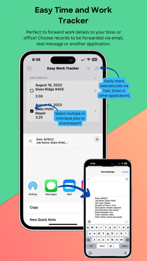 Need to forward certain project details to another worker, to the office or email it to someone? Easily select one or multiple projects from the list and forward those using text messages, email or another application on your phone.