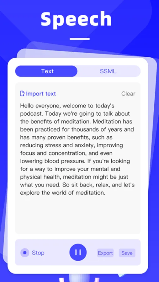 SSML Support: SpeechX supports SSML, allowing you to control the speed, pitch, volume, and more of your speech output for a more dynamic listening experience.