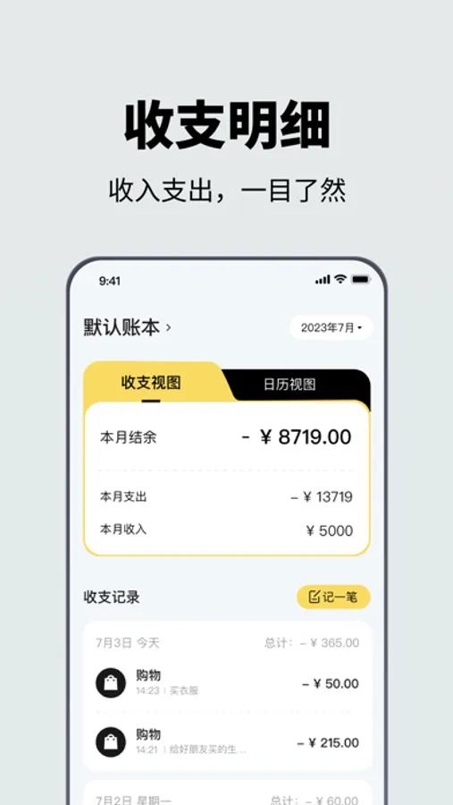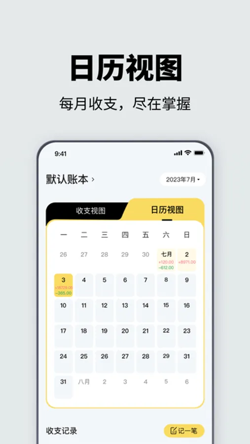 通过日历清晰展示每天的收入支出,可便捷查看指定日期的收支明细;