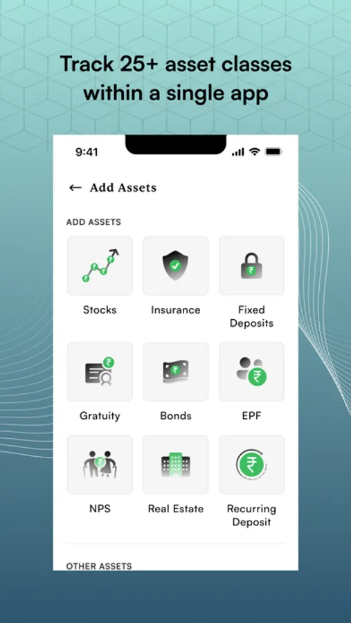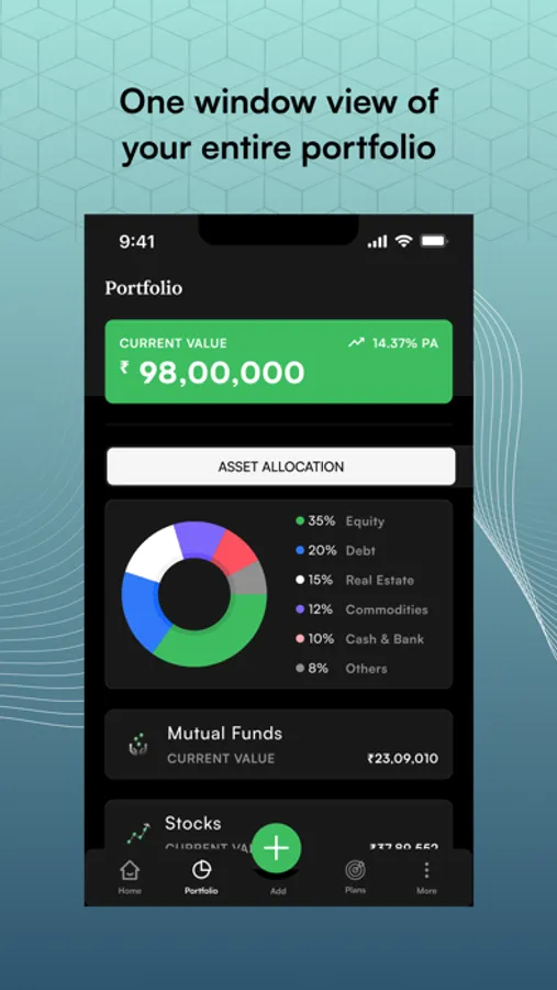 Diversify your investments with 20+ asset classes, including MFs, stocks, insurance, fixed income, commodities, real estate, NPS, small savings schemes, loans, and more. Each asset is presented in a detailed and enhanced manner, making portfolio management a seamless experience.