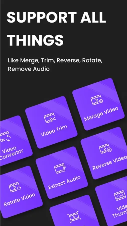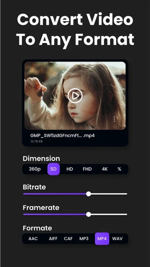 This app is made to quickly convert videos to all possible video formats or audio formats! The app has all the possible items for video editing