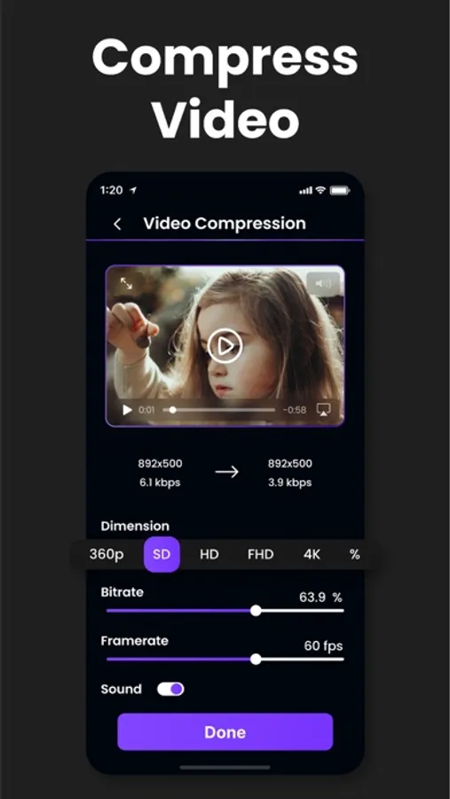 - High Quality: We have compression algorithms to compress your video keeping the nearly original video quality.