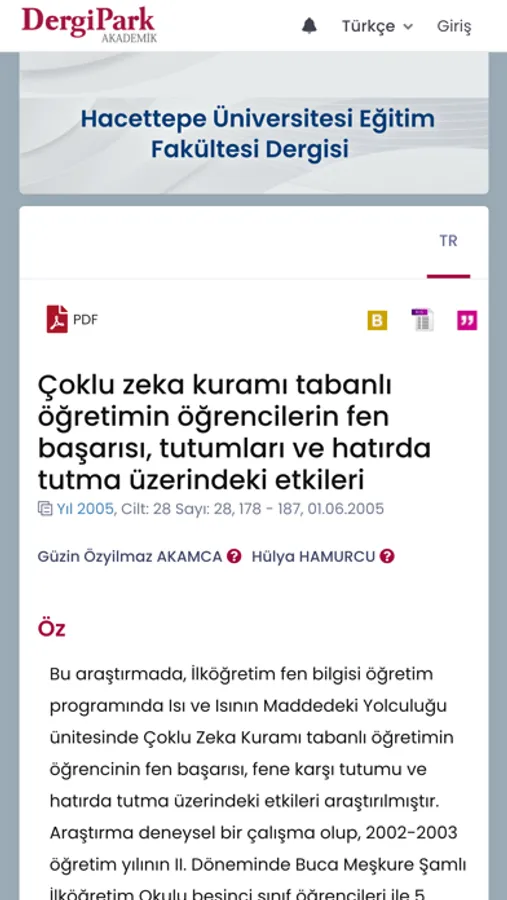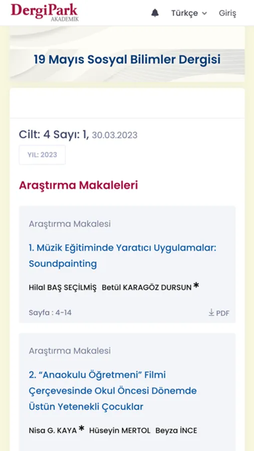TÜBİTAK ULAKBİM çatısı altında, Türkiye'de yayınlanan akademik hakemli dergiler için elektronik ortamda barındırma ve editorial süreç yönetimi hizmeti sunar. DergiPark, ulusal akademik dergilerin standartlara uygun olarak varlık kazanmasına ve uluslararası görünürlüğünün artırılmasına destek olur.