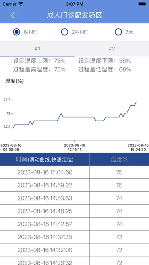 手机APP可以实时查看未处理/ 已处理湿度超标报警信息以及对应详情、对应曲线并处理。
