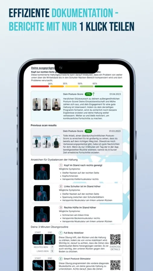 Zeigen Sie Ihren Patienten ihre Haltungsveränderungen über die Zeit! Motiviert und erhöht das Bewusstsein für die eigene Gesundheit.