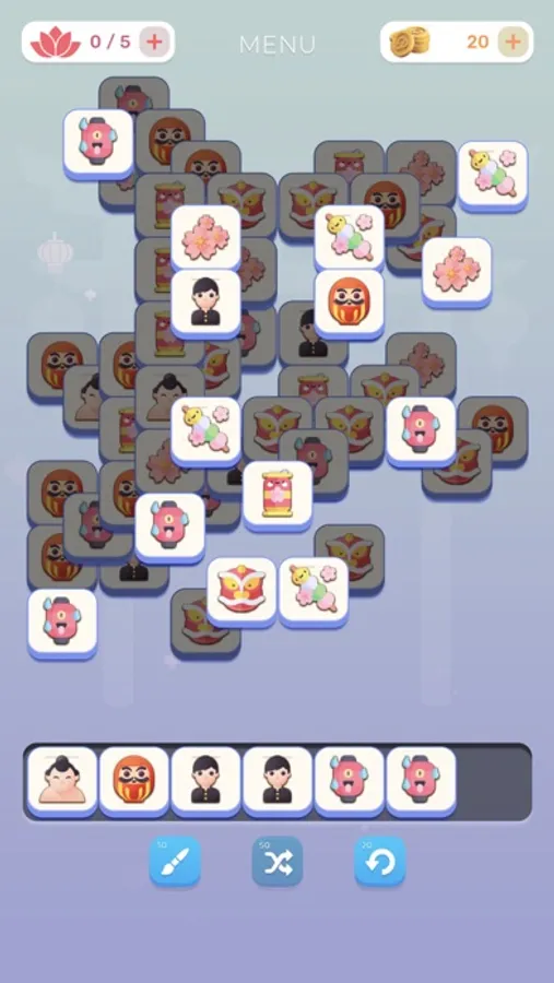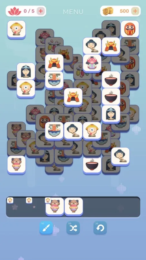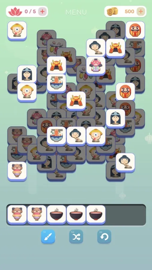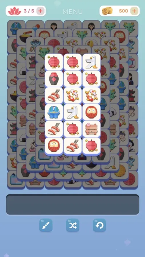 Your goal is to get three identical icons next to each other and remove them from the game to finish all the tiles on the board.