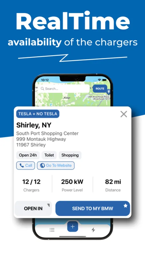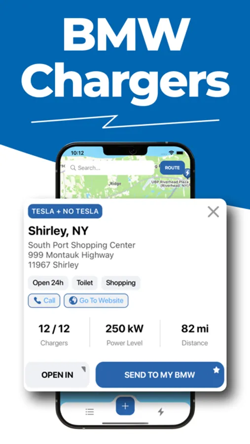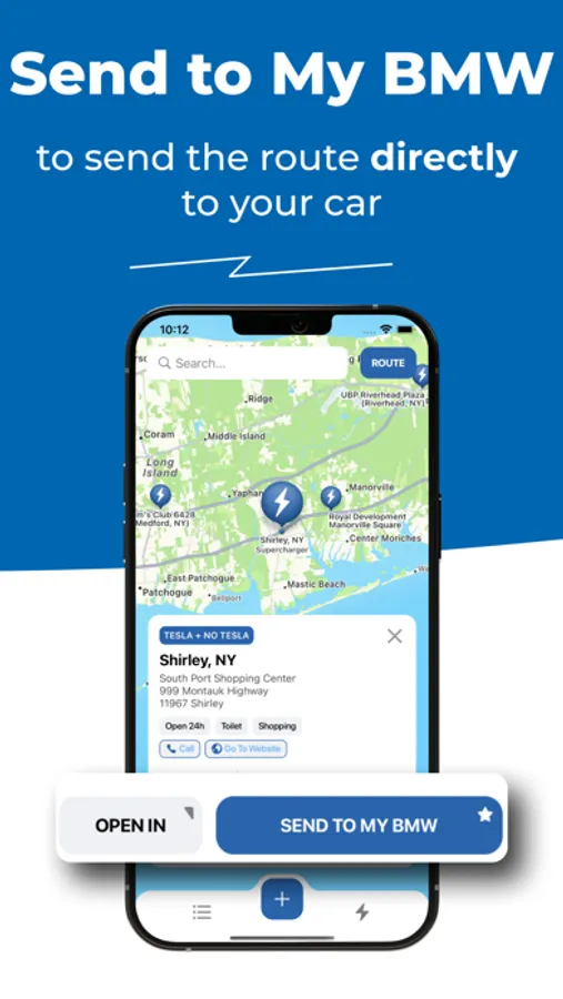 The detailed view informs you of the distance in miles to the supercharger. Simply tap on it to start the route and get there, or you can directly send the route to your embedded BMW GPS.