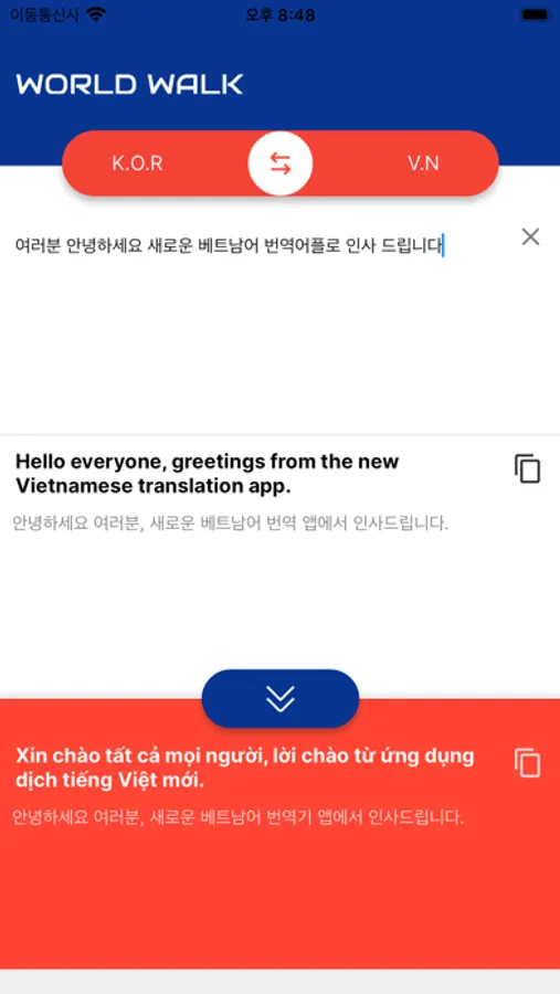 한국어를 입력 – 영어 출력 – 뉘앙스 변동 및 결과 확인- 베트남어 출력