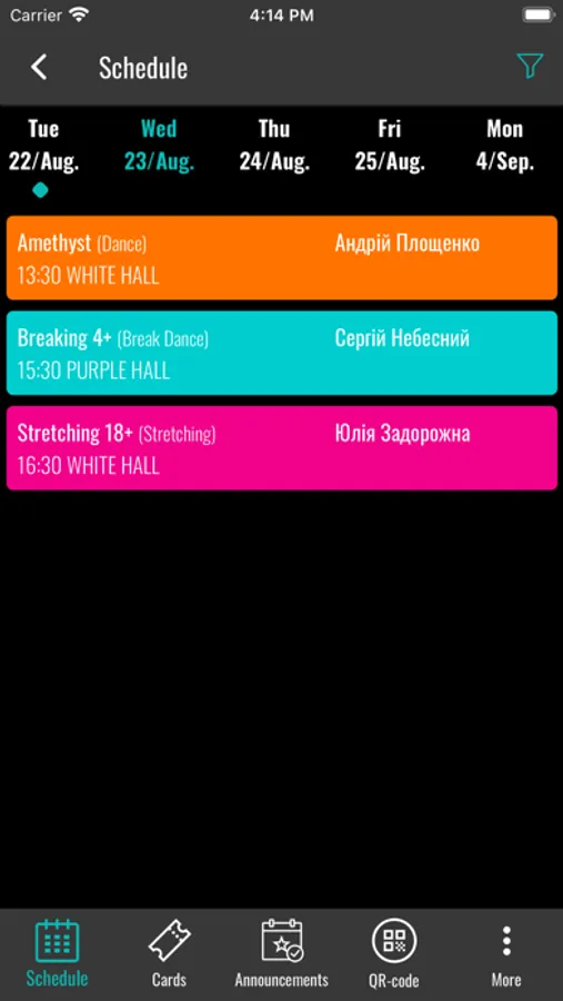 Registration in the club, viewing the schedule and season tickets, signing up for training.