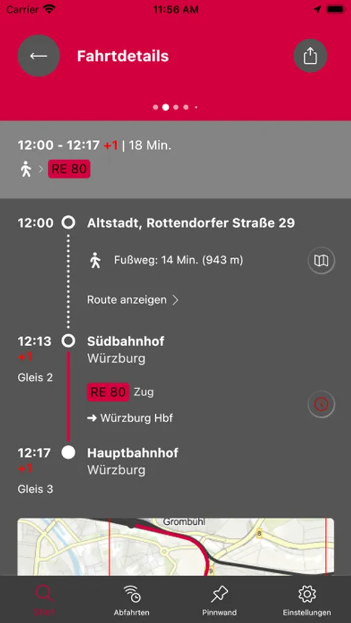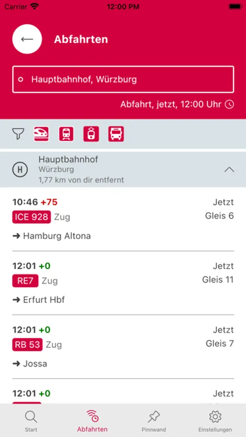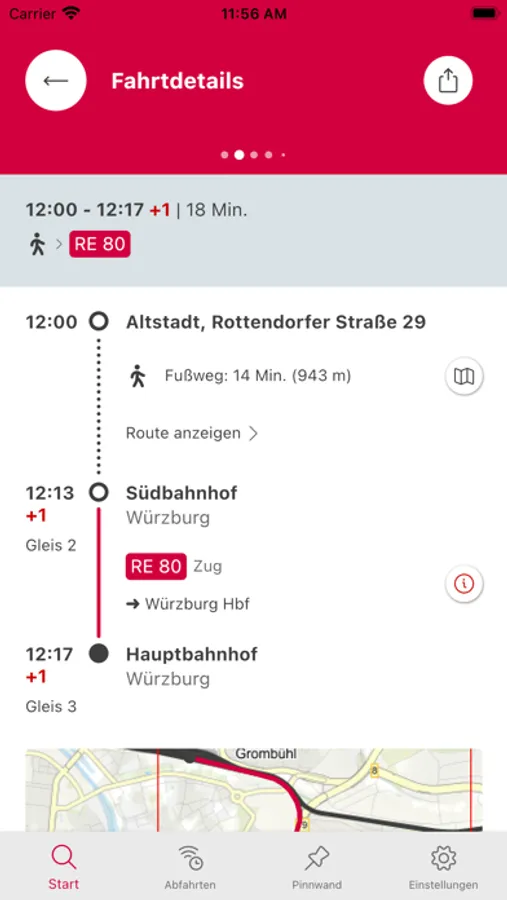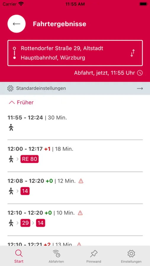 Neben Tür-zu-Tür-Verbindungen informiert Sie die mobile Fahrplanauskunft für Straßenbahn, Bus und Bahn über Abfahrten und Ankünfte von Ihrem Standort, der Haltestelle oder direkt aus der Karte. Für zahlreiche Verkehrsmittel stehen dabei Echtzeitdaten inkl. Verspätungen und Ausfälle bereit. Zusätzlich können Sie die Positionen der Fahrzeuge auf der Karte live mitverfolgen. Favoriten ermöglichen den bequemen Abruf von Fahrtinformationen für häufig genutzte Verbindungen. Die komplette Reisekette können Sie auf der Karte oder im Luftbild inklusive der Fußwege nachvollziehen. Ebenfalls sind die wichtigsten Liniennetzpläne für Würzburg und den Verkehrsverbund mit einem Klick abrufbar.