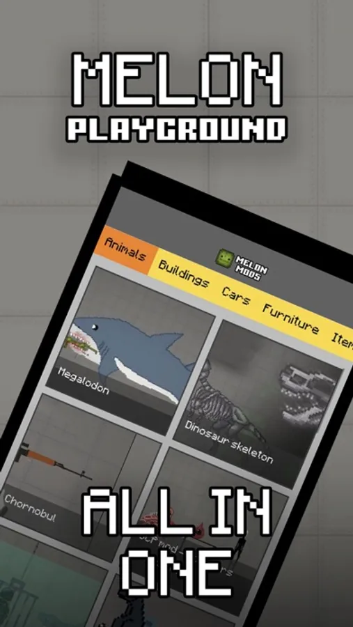 The "Addons and mods for Melon Playground - Melon Sandbox" app is designed to enhance the gaming experience of players who love playing Melon Playground, a popular sandbox-style video game. The app offers a vast collection of addons and mods that can be easily installed into the game to add new items, tools, skins, and gameplay features. The application has thousands of the hottest mods currently such as Skibidi Toilet, Camera man, Speaker man, TV man, Doors, Rainbow Friends, FNAF, Garten of Banban ...