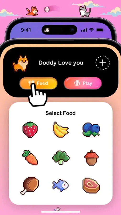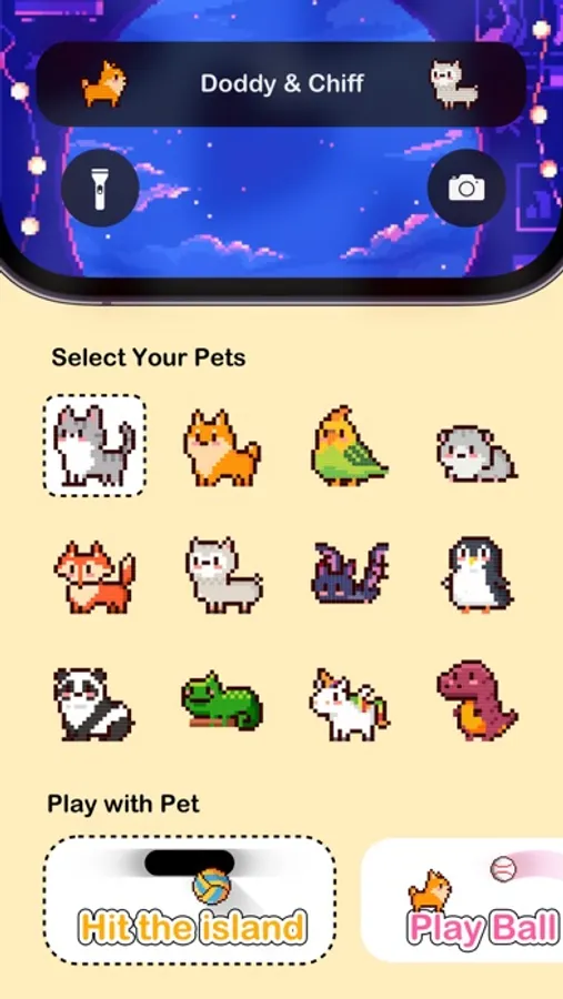 We're happy to introduce you to our cute animals that are eagerly waiting to join your dynamic island. Members include cats, dogs, birds, foxes, hamsters, bats, penguins, chameleons, alpacas, pandas, dinosaurs and unicorn. Each pet has its own personality waiting for you to discover. You can also give your favorite pet a nice name!