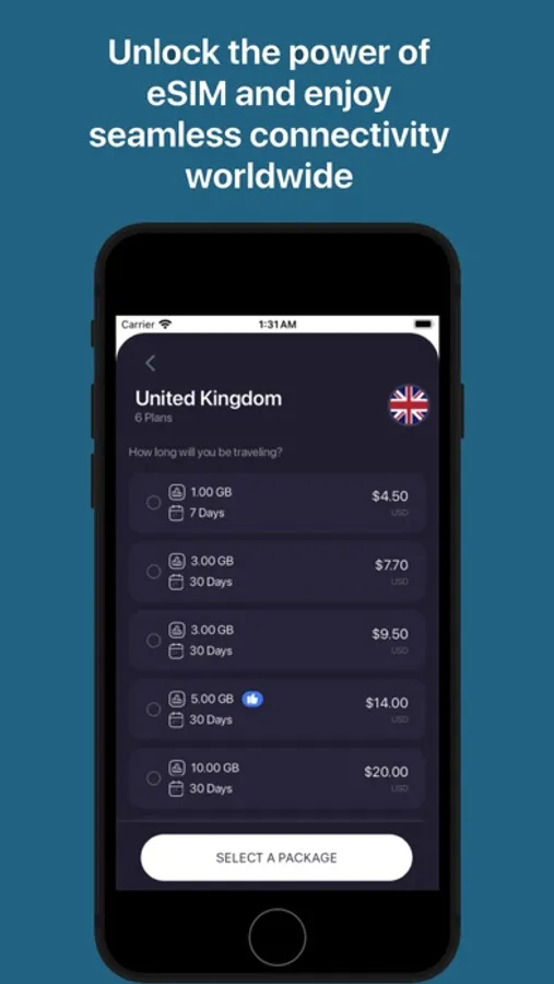 Enjoy global connectivity by purchasing one of our prepaid eSIM plans, which start at $4.00 and are available in over 200 countries.