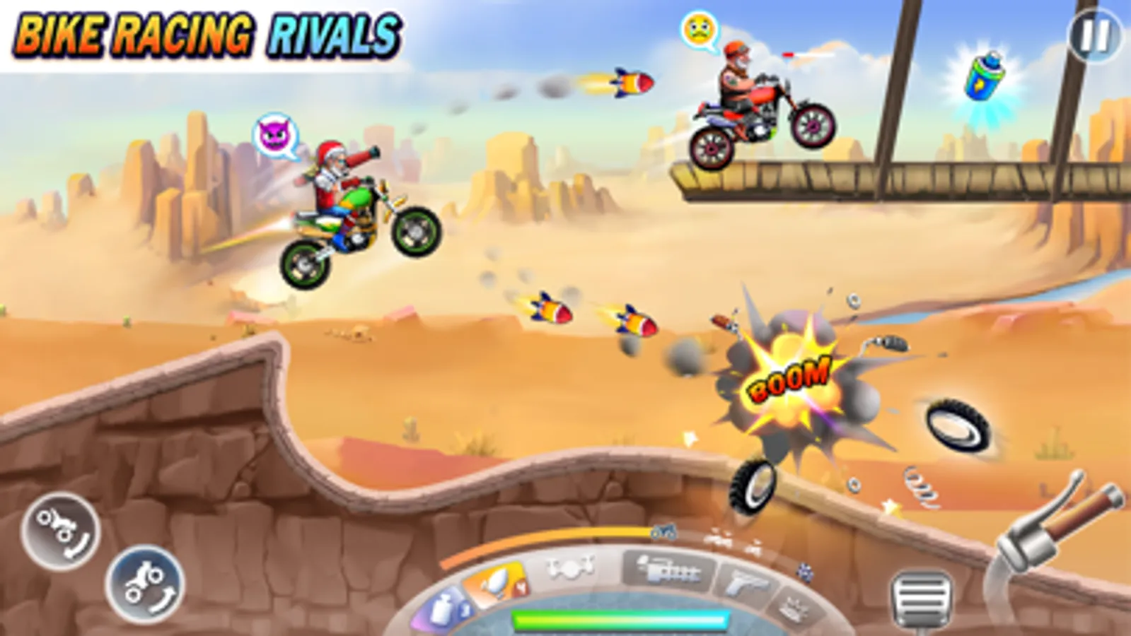 - Equip your bike with powerful missiles and boosts as you progress in bike game