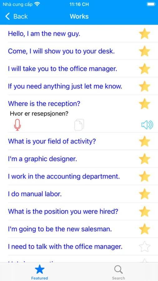 Learn Norwegian Phrasebook Offline has 1066 common phrase in Norwegian with sound and you can use all of them without network. Very useful for you learn and go to travel to the world.