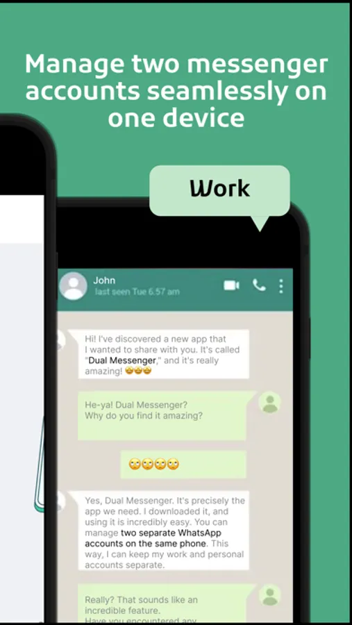 ► Seamlessly switch between WhatsApp accounts without the need for another device.
