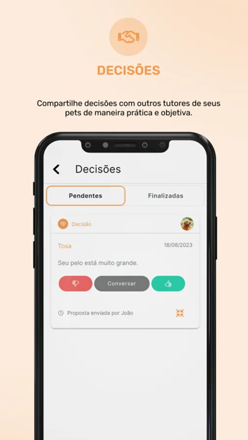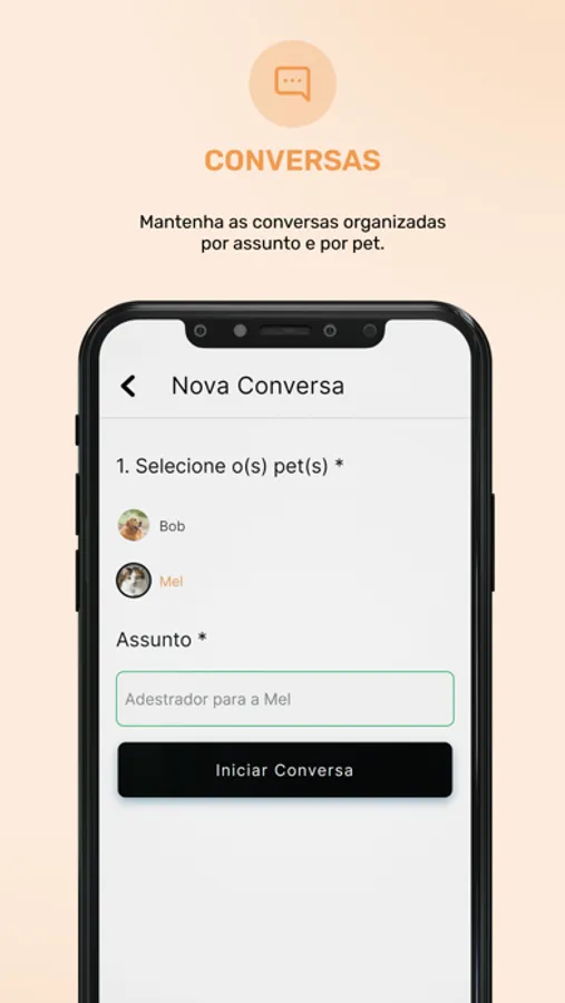1. Suas conversas ficam separadas por tema e por pet, facilitando a recuperação das informações sempre que você precisar;