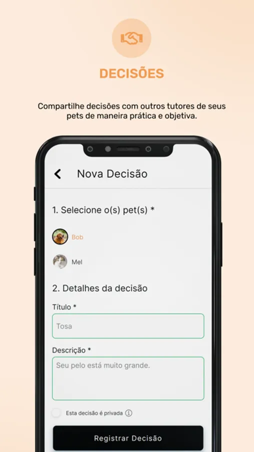 2. Organize diferentes decisões tomadas para diferentes pets e por tema;
