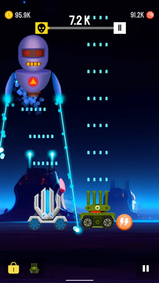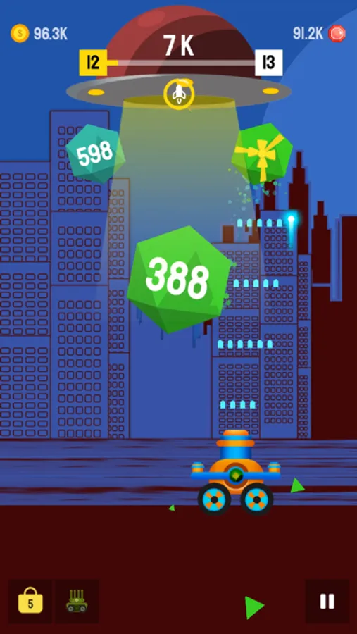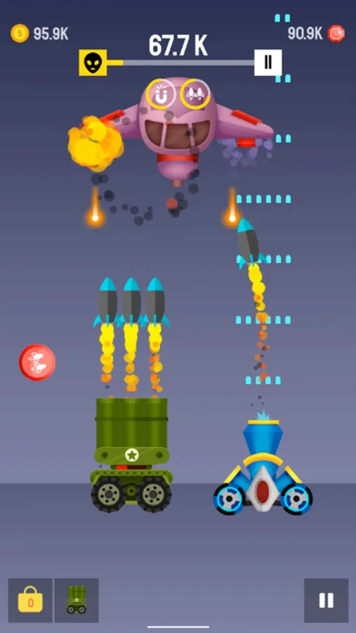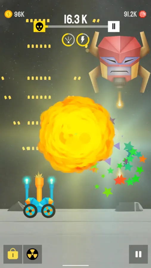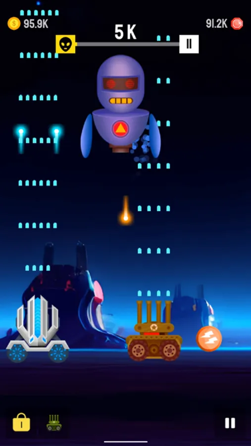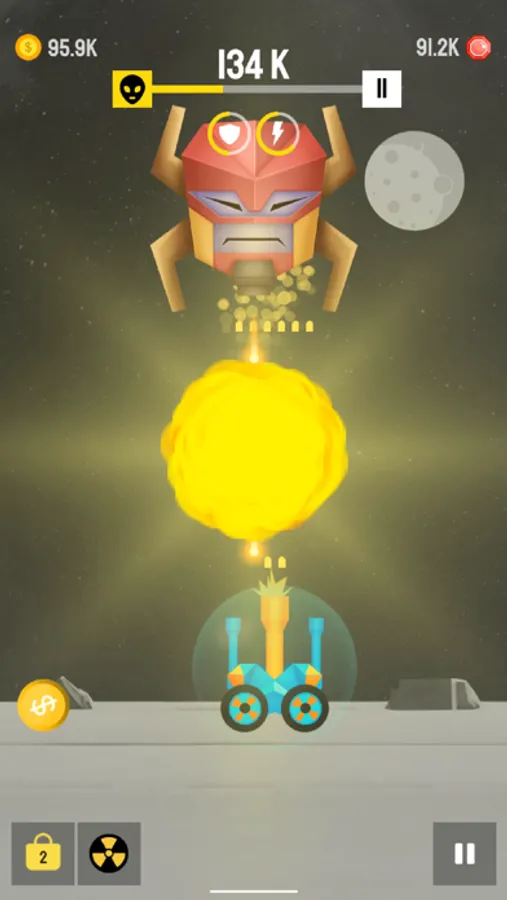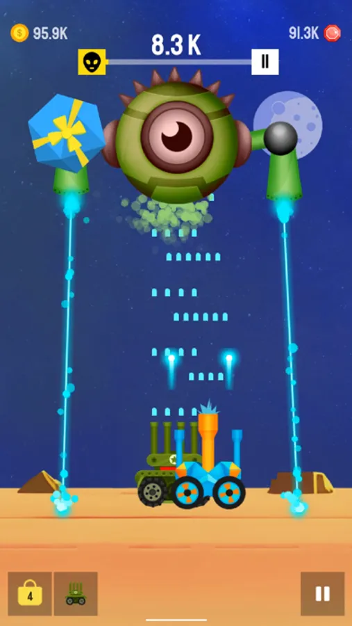 The game contains unlimited levels every five levels there is a monster from the space sent to you to stop your from defending out planet.