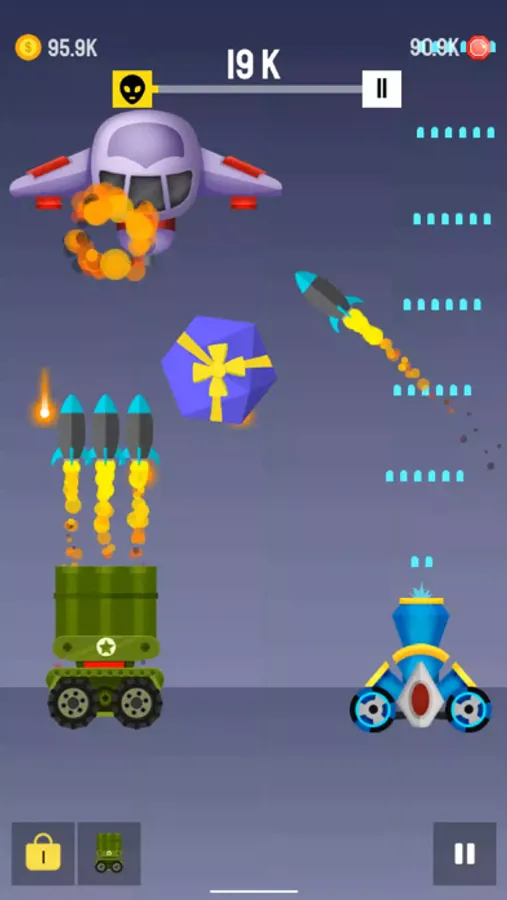 while playing the is many gifts will sent to you to help you complete levels like rockets, power bullets, freeze enemies, power shield to protect you, and more.