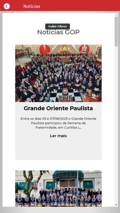 Poder ver os eventos através do menu "Eventos" e aos meios de contato que o GOP-SP dispõe através do menu "Contato";
