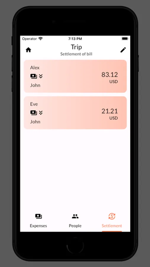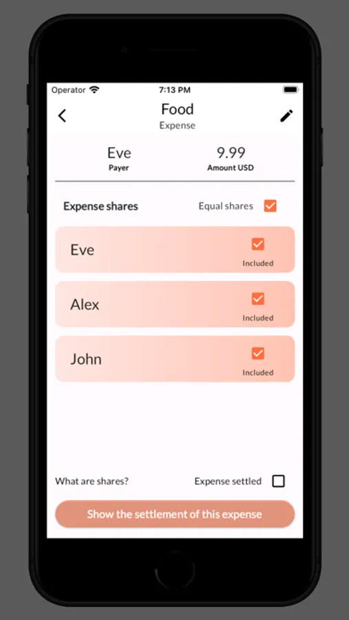 Did everyone pay for something different? It's easy: add the joint bill, the people and their expenses and see who gives cash back to whom.