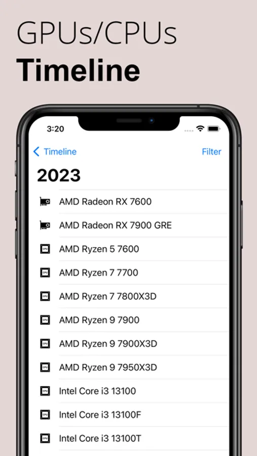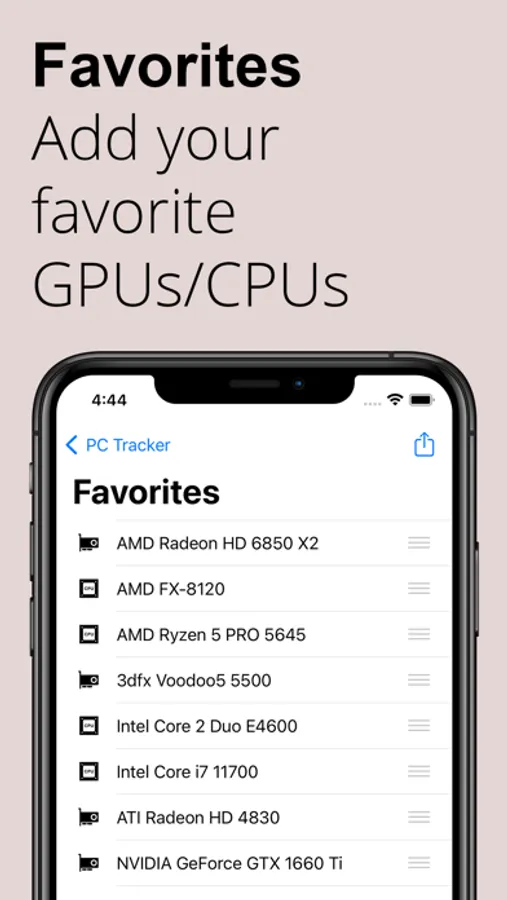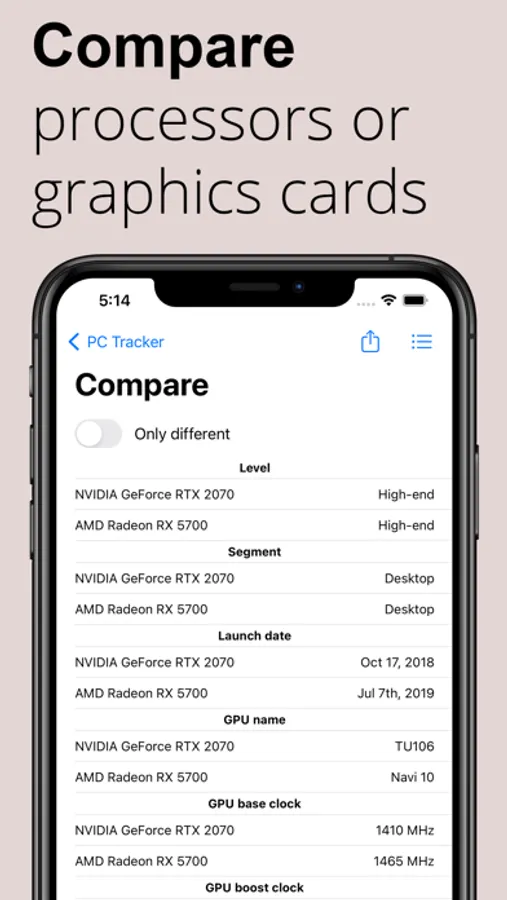 Our directory contains 1700+ graphics cards and 5000+ processors with specifications. With PC Tracker, you can compare graphics cards or processors and choose the right one, this will help you build or buy a PC.